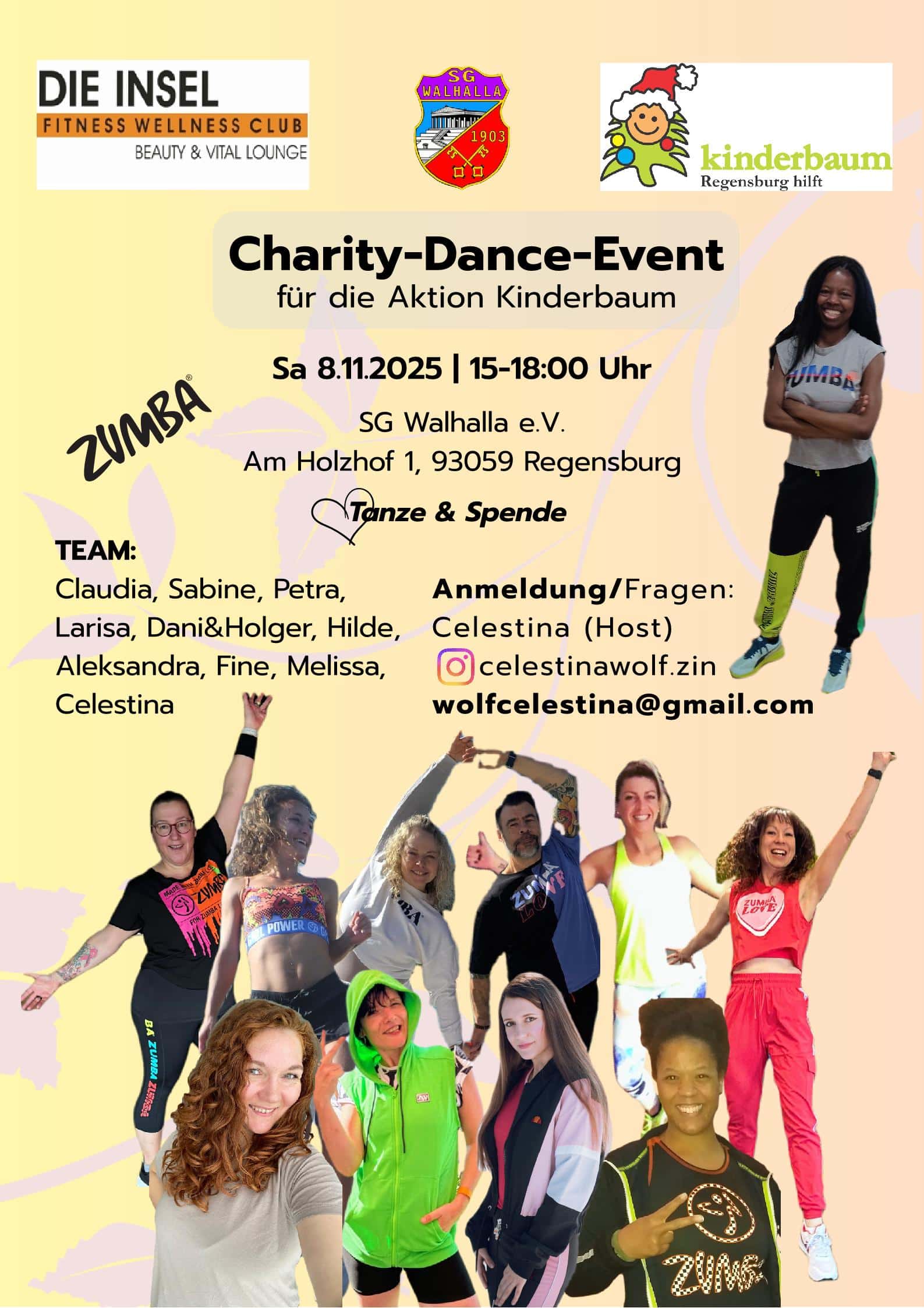 Das SGW-Zumba-Team lädt ein zum diesjährigen Charity-Dance-Event für die Aktion Kinderbaum. Am Samstag, 8.11.2025 könnt Ihr mit uns tanzen und gerne eine Spende für den Aktion Kinderbaum machen. Kontakdaten: siehe Flyer.